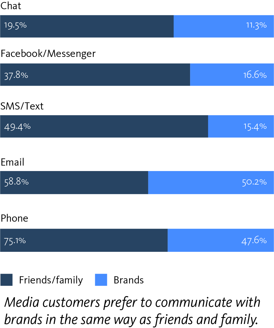 Brands have reacted to this demand by offering virtual assistants and self-help tools to solve problems. But only 10 percent of media consumers are actually satisfied with the help they receive via these digital channels, with communications respondents sharing, in surprising news, that an old-school phone call is a three times better experience than interacting with a brand’s digital care services.